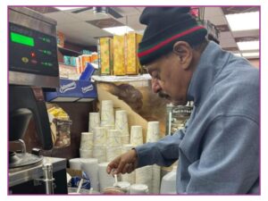 كان واقفًا خلف ماكينة القهوة كما كان دائمًا خلف مواقفه. ثابتا، لا يخجل من العمل، ولا يتخفّى من الحقيقة. يمارس حياة بسيطة، لكنها حياة تشبه روحه، نقية، صادقة، غير ملوثة بسلطة ولا مصلحة.